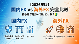 口座開設・準備 国内FXと海外FXの違いを知らないと危険|初心者が失敗しない口座の選び方 国内FXと海外FXの違いを初心者向けにわかりやすく解説。安全性・レバレッジ・税金・スプレッドを徹底比較し、どっちを選ぶべきかを解説します。これからFXを始める方におすすめの口座も紹介。 2026.03.29 口座開設・準備